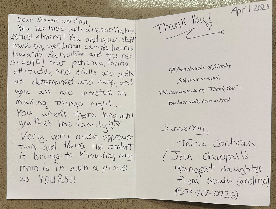 We are actively involved in the training of our staff which gives us confidence that our caregivers are trained to meet the needs of residents requiring supervisory, personal and direct level of care. Regardless of your loved one level of care, our mission is to provide high quality person-centered care by empowering them to continue to maintain their independence in the comfort of a home.