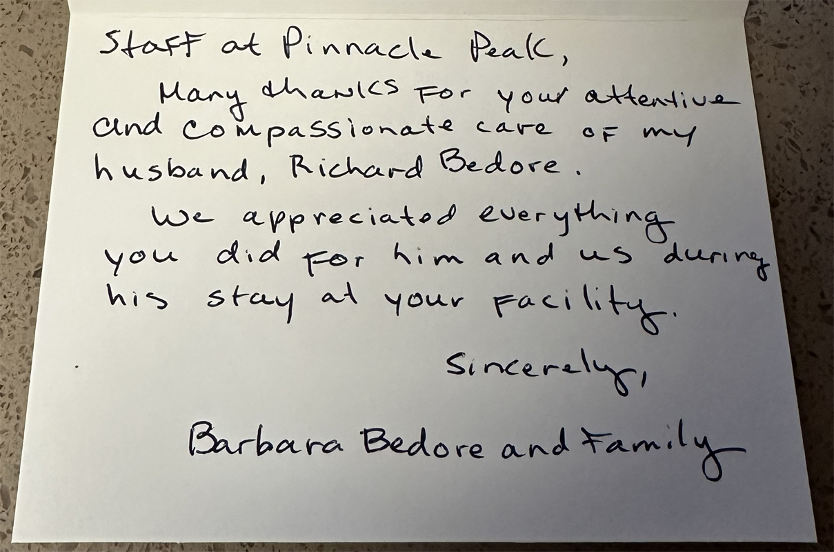 Welcome to Pinnacle Peak Assisted Living Home, our scope is to provide care to elderly population who require assistance with activities of daily living. As a team we value the importance of continuing education as this will ensure we are proving care to the highest standards.